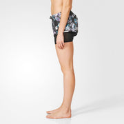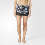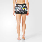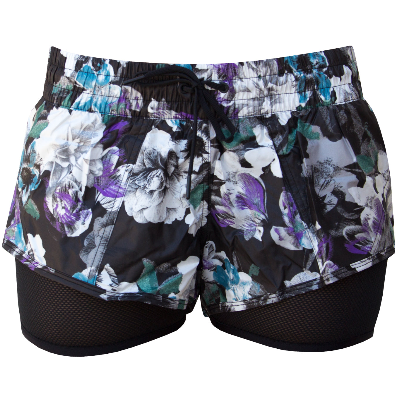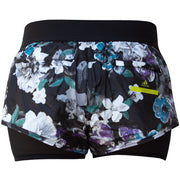 Run lightning fast in these awesome track shorts. With a soft Mesh undershort that pulls almost 2 inches below the length of the short, you get extra coverage in a feminine way. The black based floral print is sophisticated and a fun way to show your personality during your workout. We love the wide elasticated front waistband with a boxer vibe because it smartly moves to a black flat elastic band at the back. This means no sliding around on your waist. Secret zippered back pocket stores your key or credit card. Strong is Sexy. So is this short.