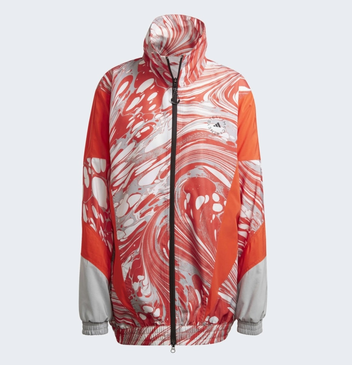ADIDAS BY STELLA McCARTNEY ASMC Woven Track Top jacket. Modern and original piece. Beautiful print and colors. Loose fit adds volume that is emphasized by elastic cuffs and waist. Fastened with a practical two-way zip closure, zipper with a brand logo. Back ventilation holes with zip closures