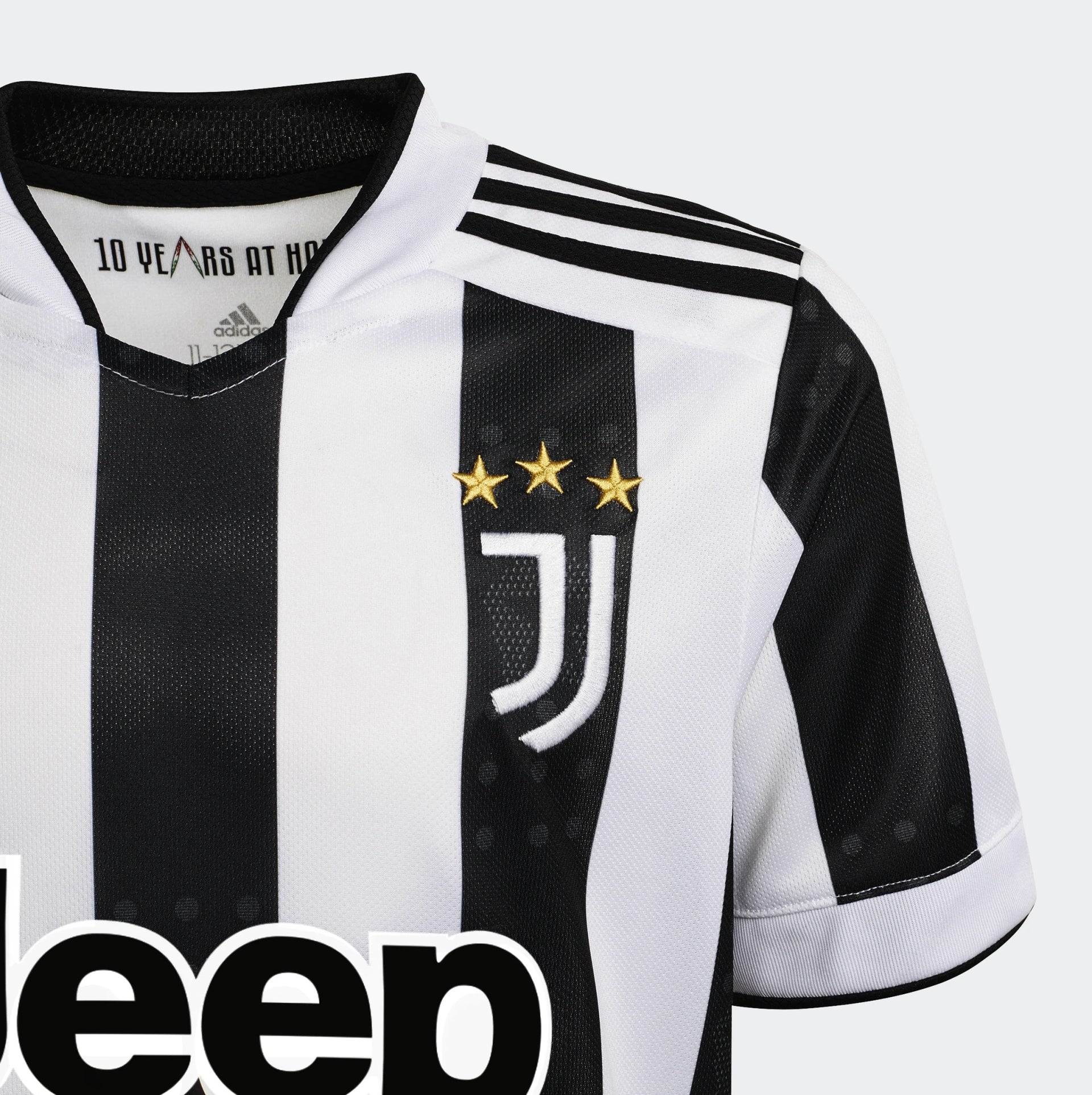 A tribute to their star-studded home. This juniors' adidas Juventus jersey celebrates the tenth anniversary of the club's iconic Allianz Stadium. The stars that dominate the building's design are fired onto its famous black stripes to add some extra style to a classic look. Soft fabric and moisture-wicking AEROREADY combine to keep fans comfortable. This product is made with Primegreen, a series of high-performance recycled materials.