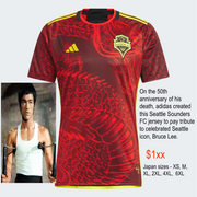 On the 50th anniversary of his death, adidas created this Seattle Sounders FC jersey to pay tribute to celebrated Seattle icon, Bruce Lee. Standing out over its bold, dragon-inspired print, a jock tag signoff proudly displays the great man's signature. Complete with moisture-wicking AEROREADY and soft fabric, this shirt was created to keep football fans comfortable.