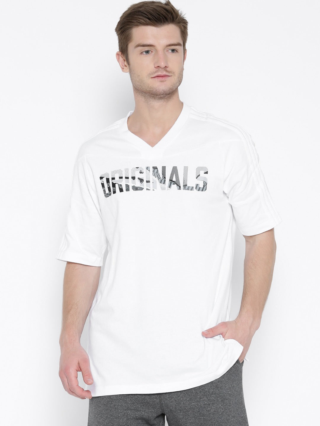 ADIDAS Originals Men White L.A. Printed V-Neck T-shirt BP8974